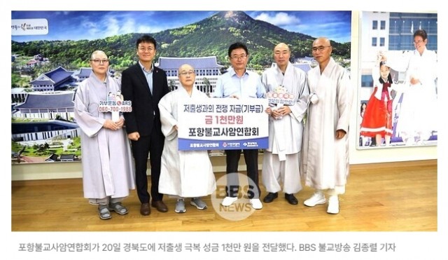 포항불교사암연합회&법광 큰스님(부회장), 경북도 저출생 극복 성금 1천만원 전달